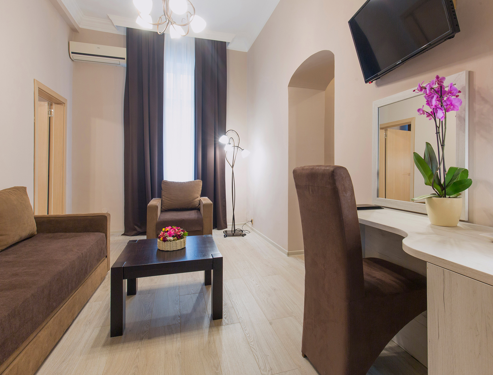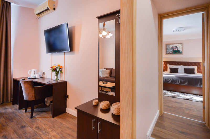 Suites are spacious and comfortable, featuring a separate bedroom with either a double (king-size) or twin beds, and a cozy lounge area with a sofa bed that can accommodate a third guest. Located in the main building and easily accessible by elevator, these suites combine a touch of luxury with all the comforts of home. Bedding configuration: double/twin + sofa bed.